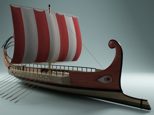 (noun) (classical antiquity) a crescent-shaped seagoing vessel propelled by oars