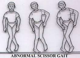 Hip adductors are tight so scissor legs occurs