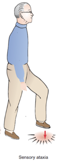 Loss of proprioceptive input telling the person where their foot is so they slam their foot on the ground so they can sense it