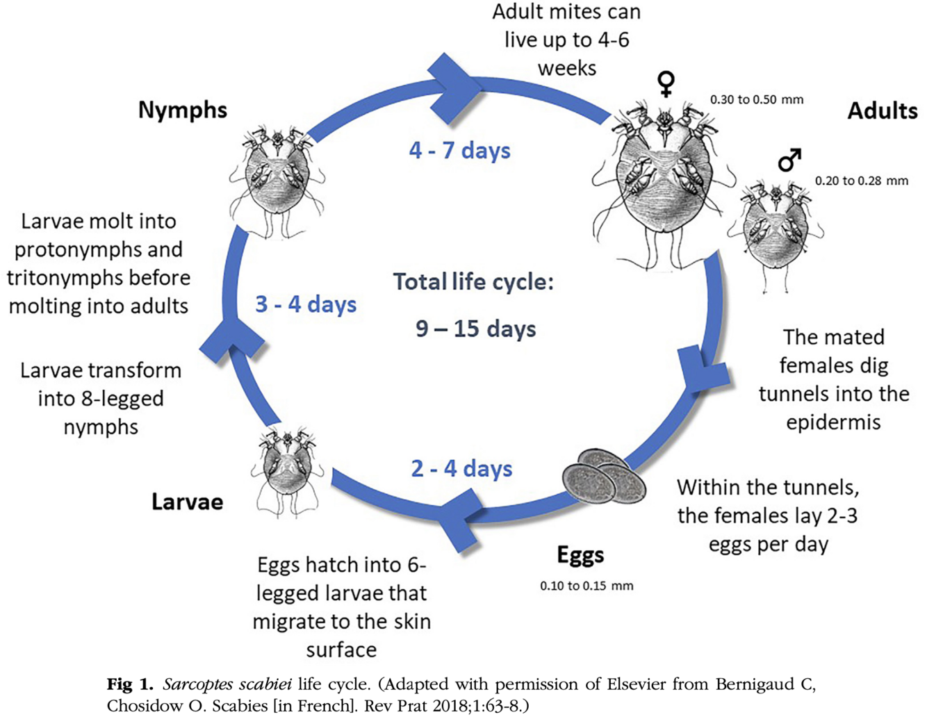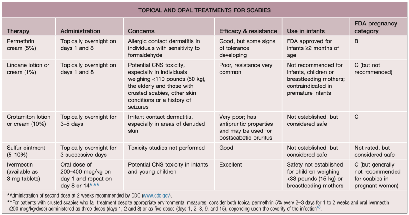 *persistance possible des des lésions 2-4 semaines après traitement (prurit ou dermatite post-scabétique)