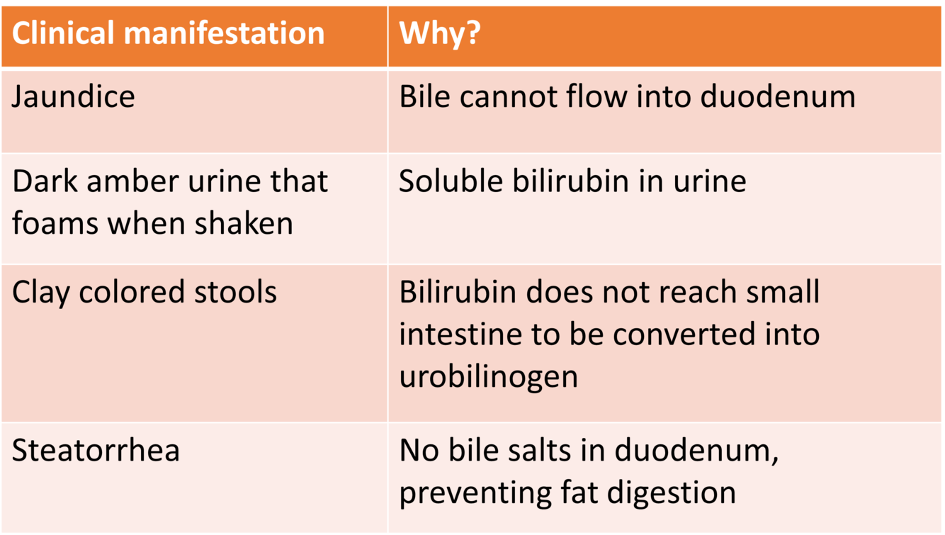 - increased Amylase (pancreatic enzyme released in common bile duct