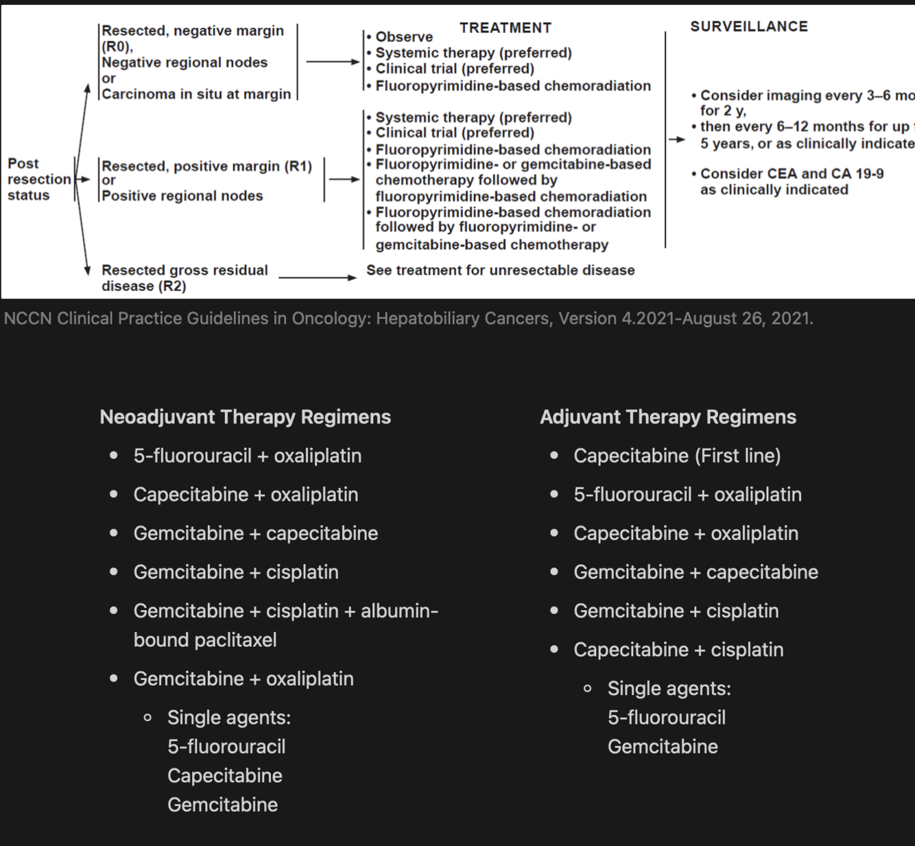 Radiation therapy (RT) - Postoperative EBRT using conventional 3D-CRT or IMRT is an option for resected extrahepatic cholangiocarcinoma and gallbladder cancer.