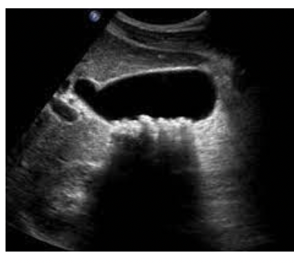 Porcelain Gallbladder - right echogenic, posterior shadow