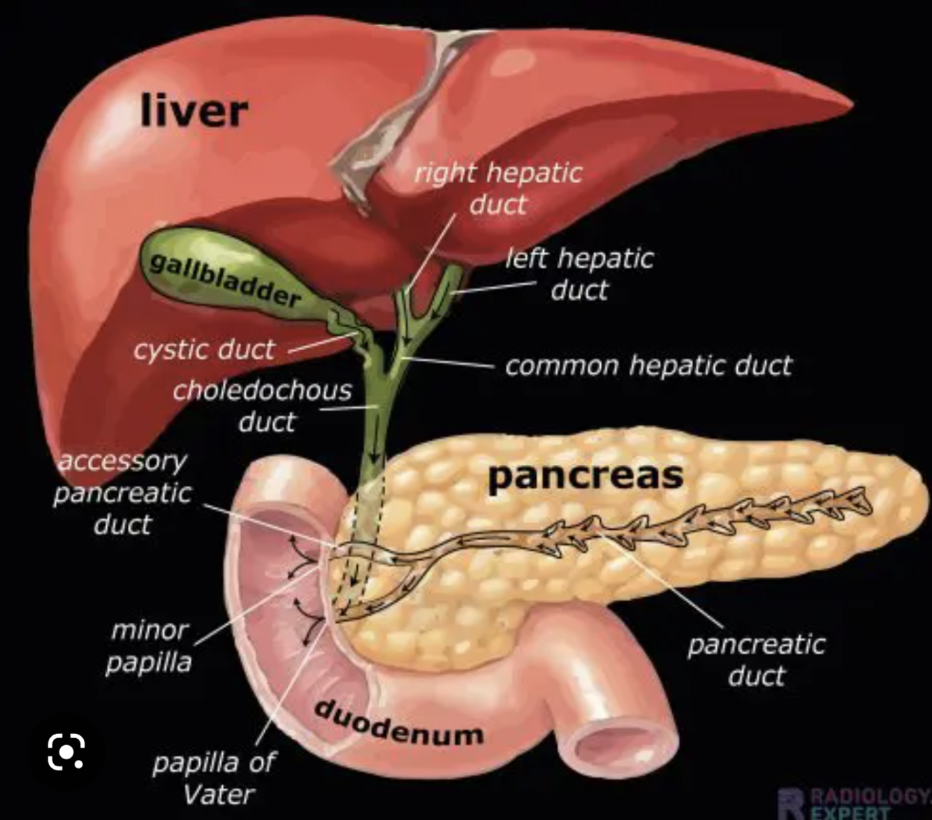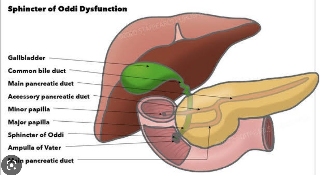 What is the name of the duct where the common bile duct and pancreatic duct merge and controls the contents into the duodenum?