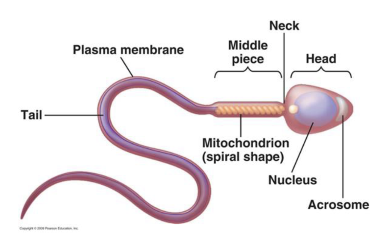o The head contains the nucleus and enzyme-filled structure called acrosomes
