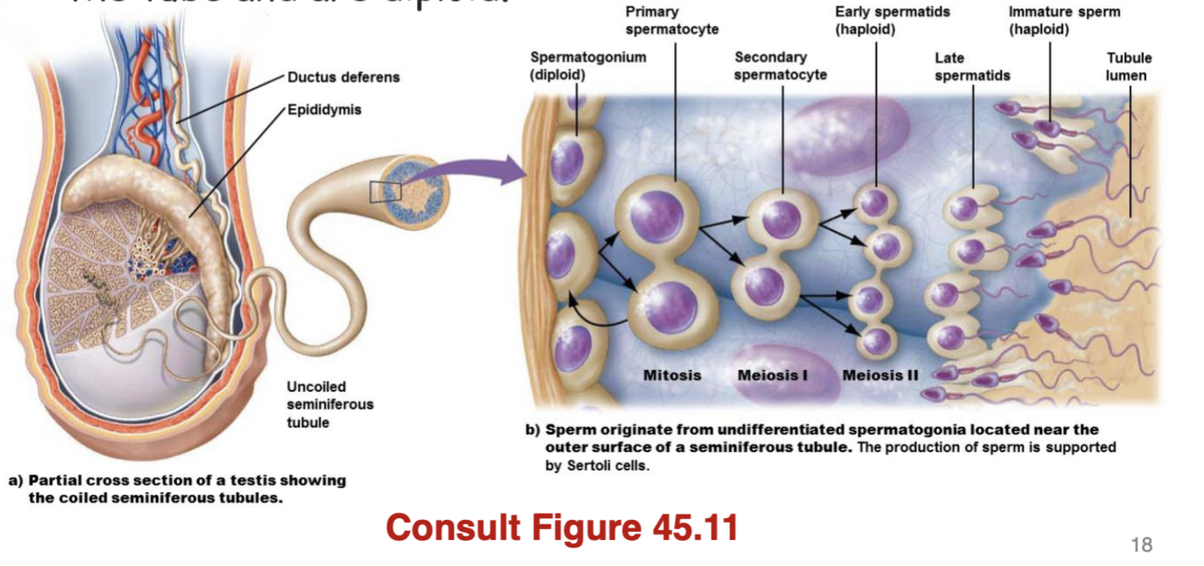 o Stem cells that give rise to sperm are in the outer edge of the tube and are diploid.
