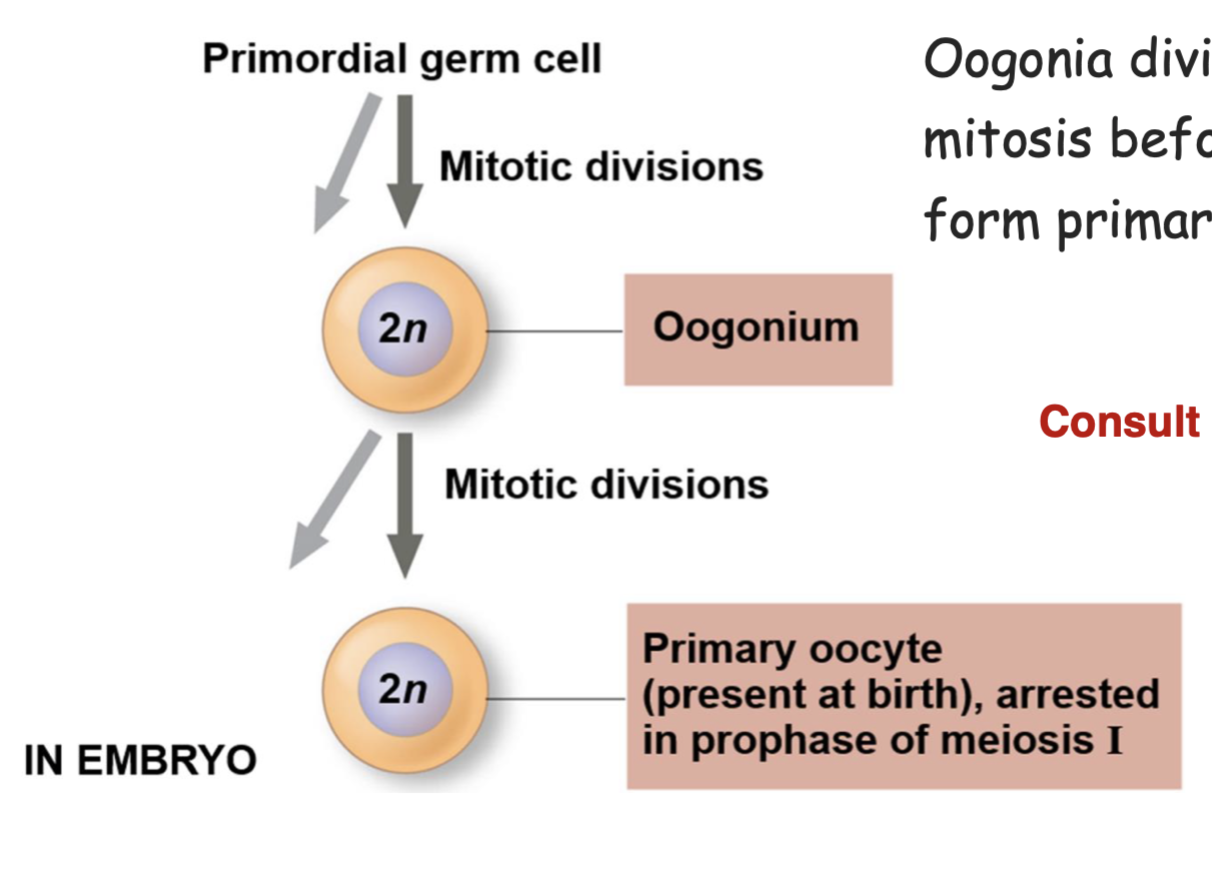 _____ divide via mitosis before birth to form primary oocyte.