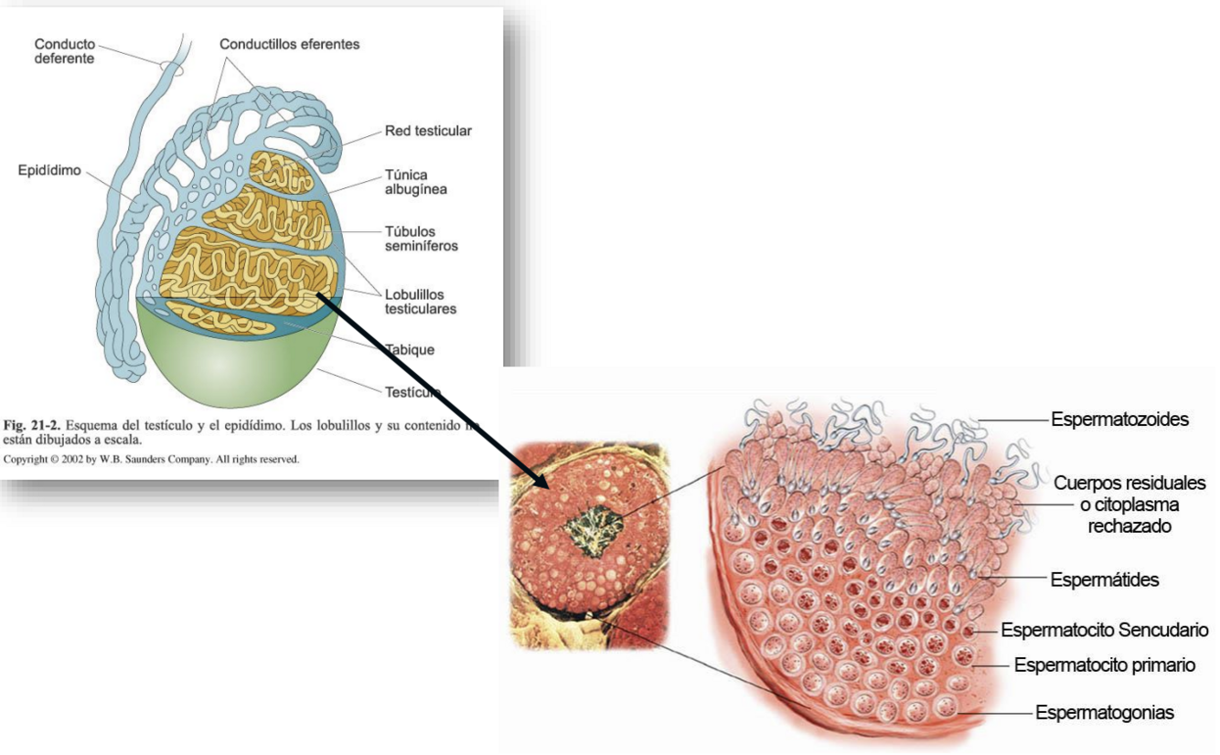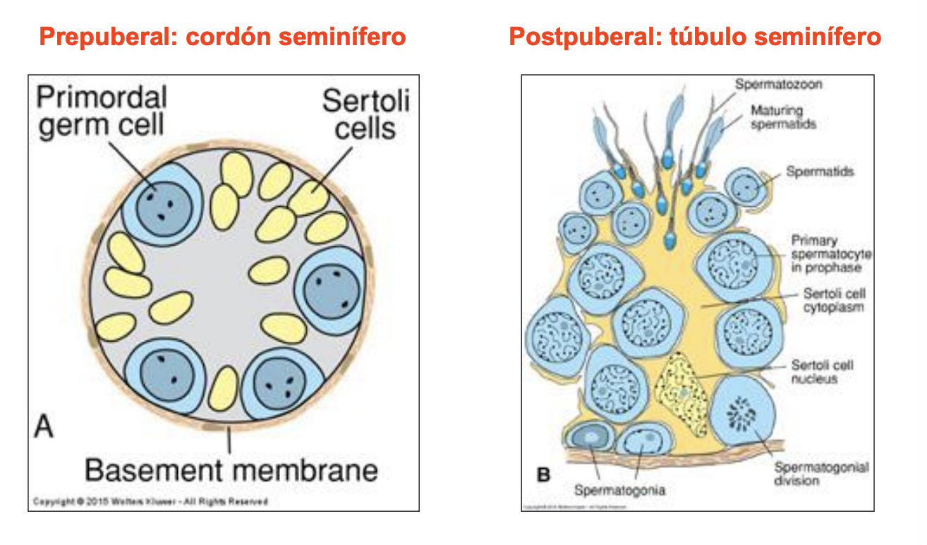 Espermatogenesis inicia en pubertad (dura 2 meses)