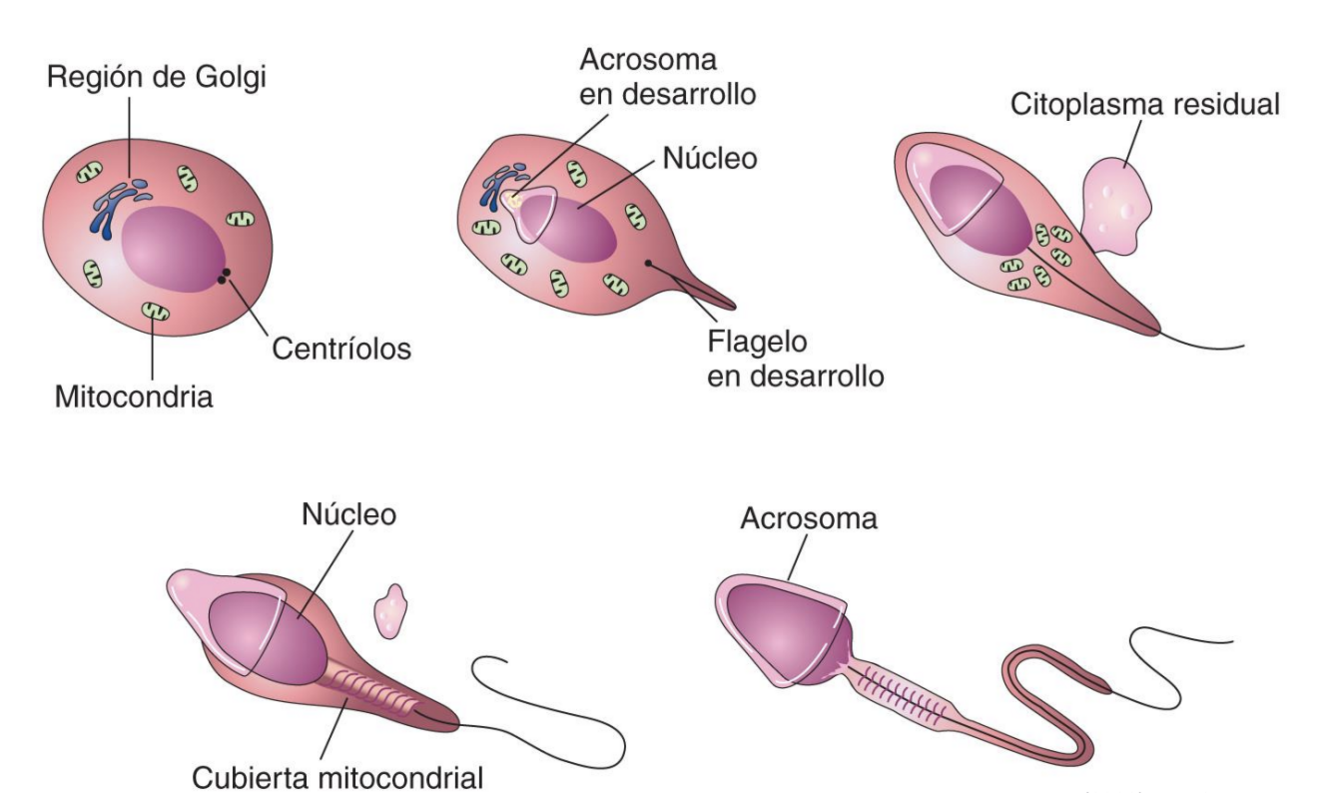 Mitosis -> meiosis 1 y 2 -> espermiogenesis