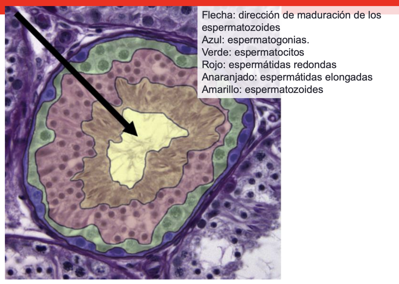 Donde se lleva a cabo, de donde vienen las espermatogonias y es un proceso continuo a partir de …