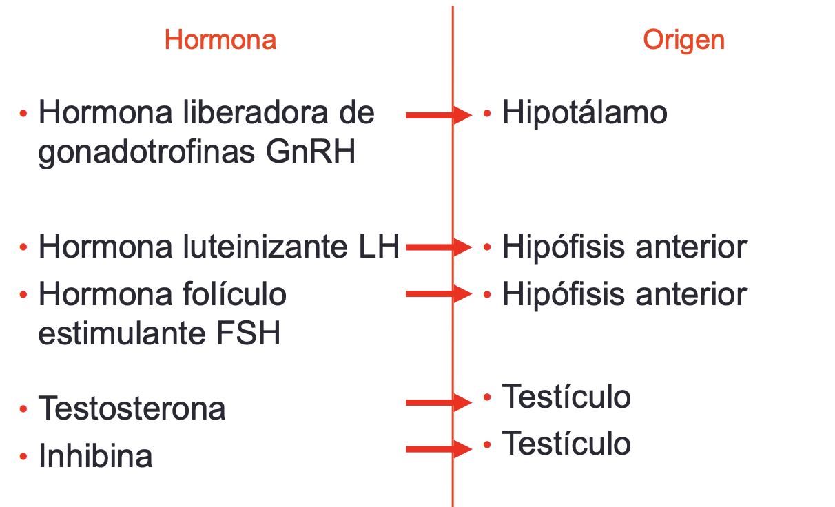 Hormonas y su origen (GnRH, LH, FSH, Testosterona e Inhibina)