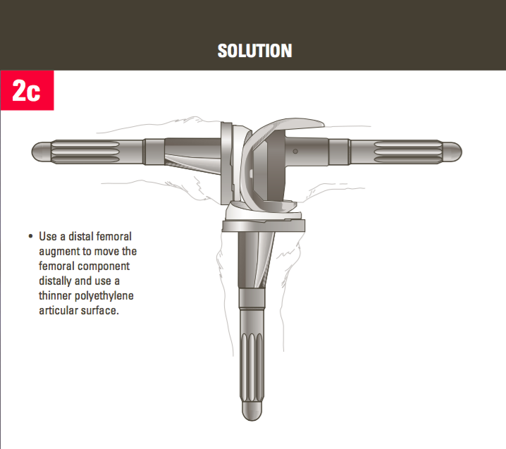 Resect additional distal femoral bone and move the femoral component proximally.