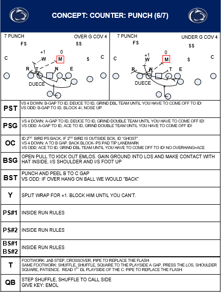 TELLS US THAT THE PLAY IS COUNTER. THE OL IS DOUBLING TO THE 2ND BIRD IN BOX PLAYSIDE BACK, THE PULLER IS PULLING FOR THE EMOL. IF 1 BIRD BOX, HE IS THE ID AND WE WILL DBL TO HIM. IF DE TRIES TO CROSS FACE, PST WILL COLLECT AND DRIVE
