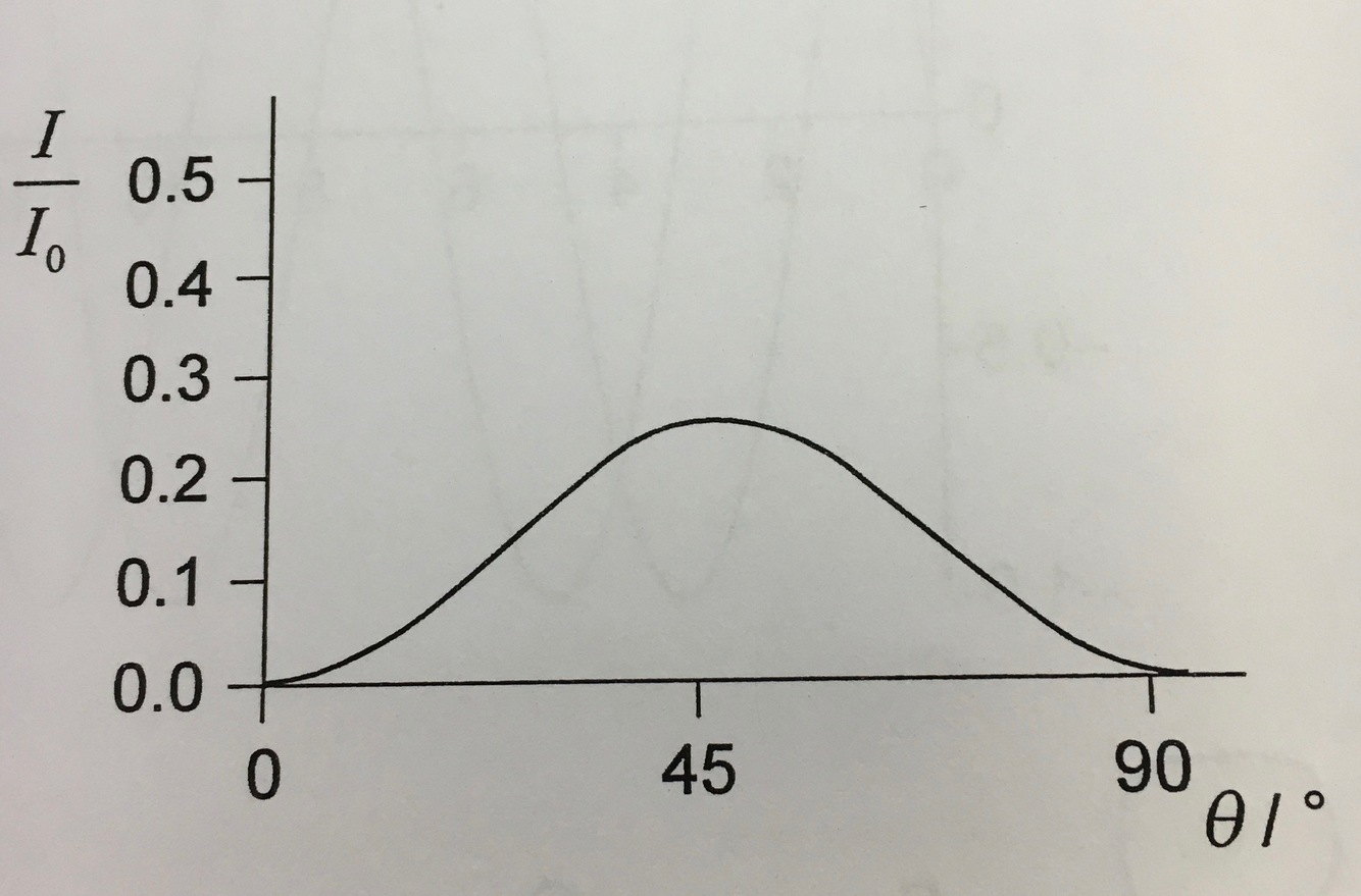 intensity angle graph for a polarizer which is turned about 90 degrees in front of another polariser