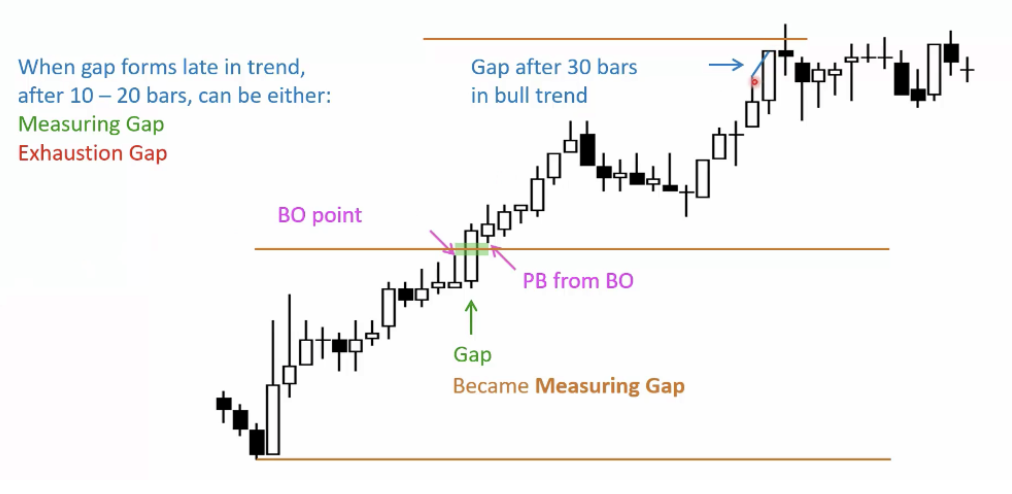 When gaps form late in trend, after 10 - 20 bars, it can be either