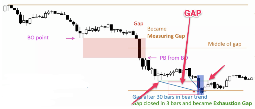 Where are the Gaps in this possible bull exhaustion Gap late in Bull Trend?