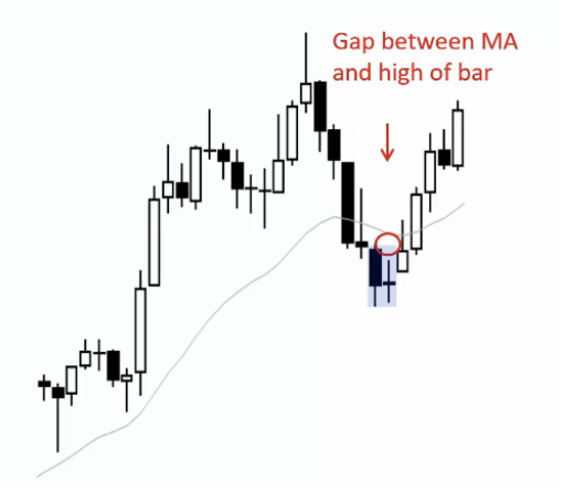Bull Trend with 20 or more bars above MA finally has one or more bars completely below MA (There is a Gap between MA and high of bar)
