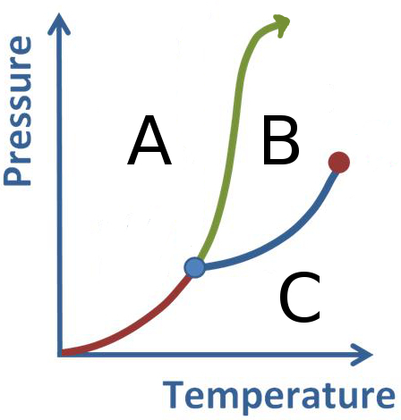 What phase is the substance in sections A, B, and C in the below diagram?