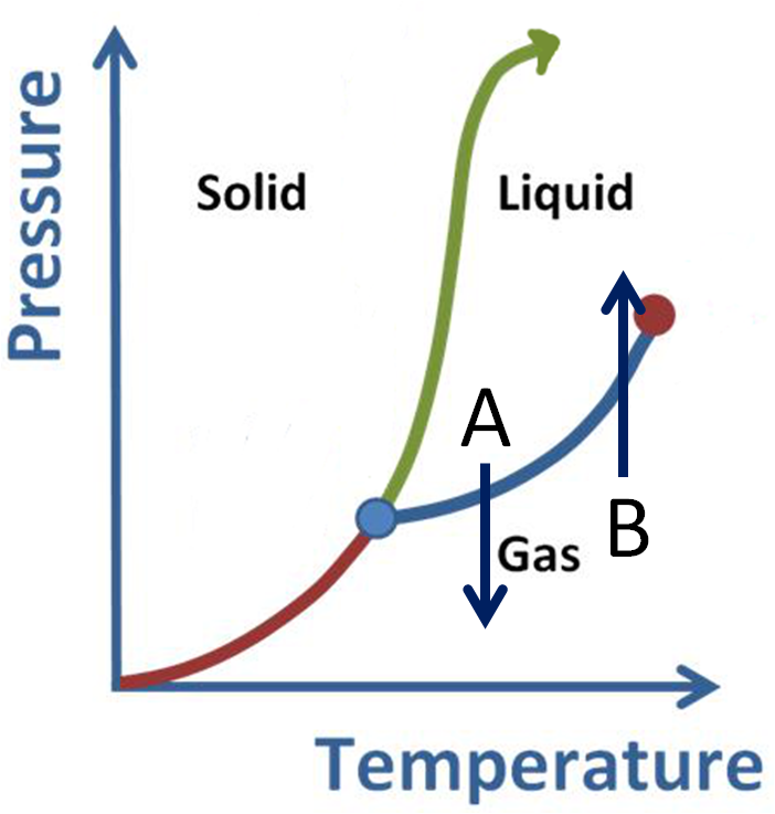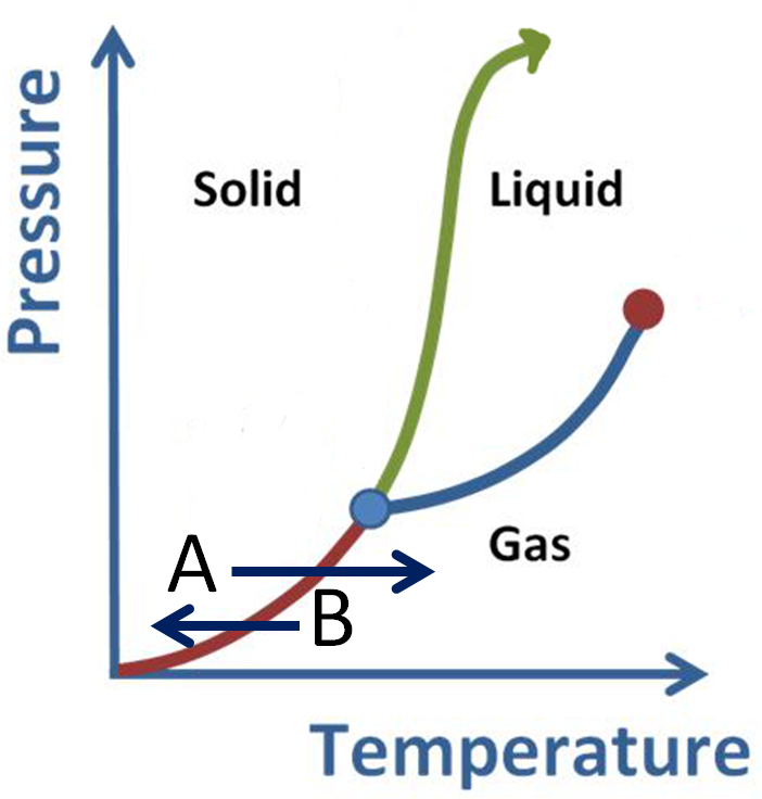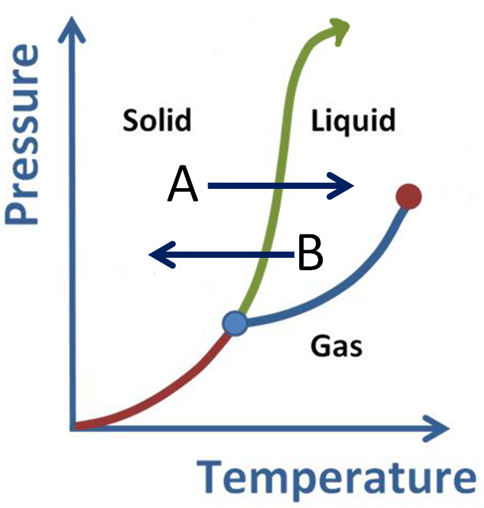 What phase conversions are being shown with arrows A and B?