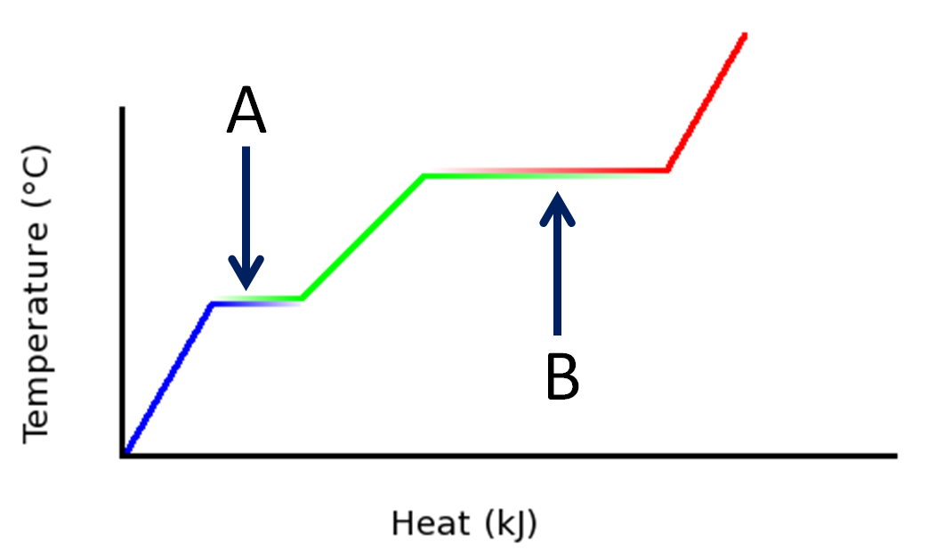 What processes are associated with the plateaus A and B, for the general heating curve below?