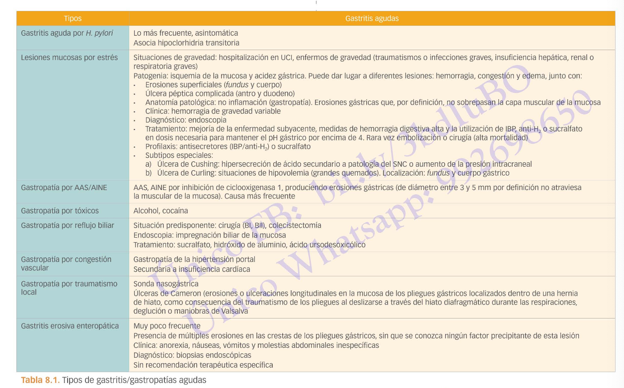 Tipos de gastritis / gastropatías agudas