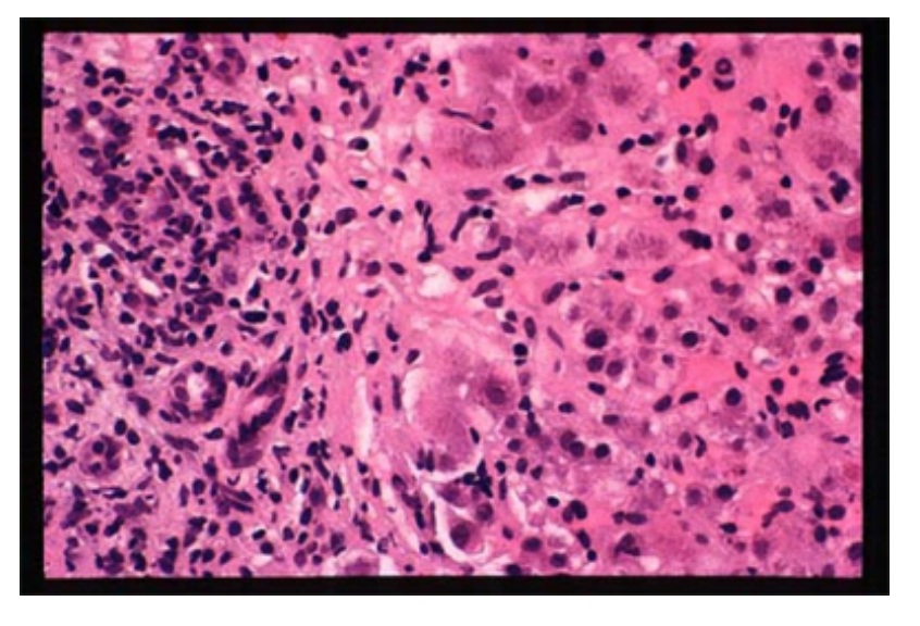 florid interface hepatitis (ie inflammation spilling over the portal tract limiting membrane on to the hepatocytes)