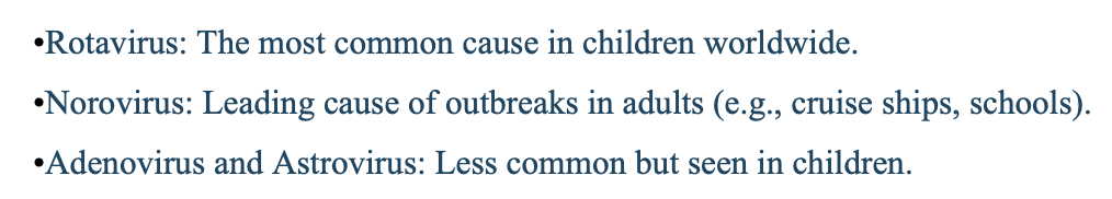 Explain the types of viral cause of gastroenteritis
