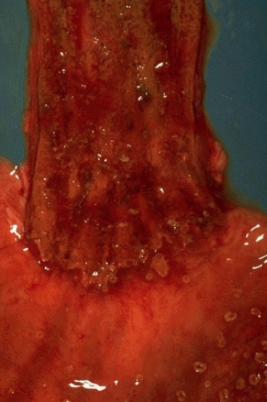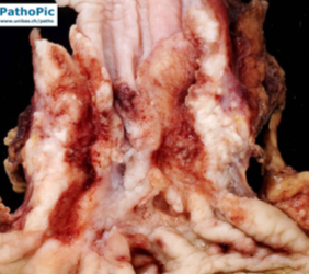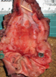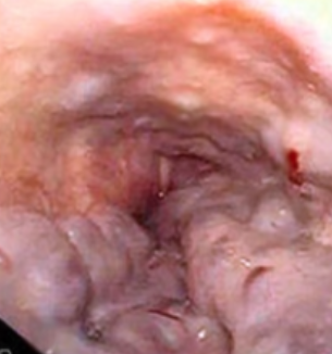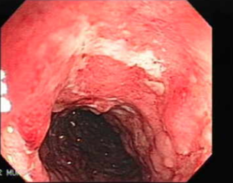 60yo male with long-standing GORD and progressive dysphagia. Most likely pathology seen on endoscopy?