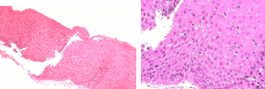 20yo male presents with difficulty swallowing food. It is worse when he eats certain foods and is not relieved by antacids. He has a history of asthma and eczema