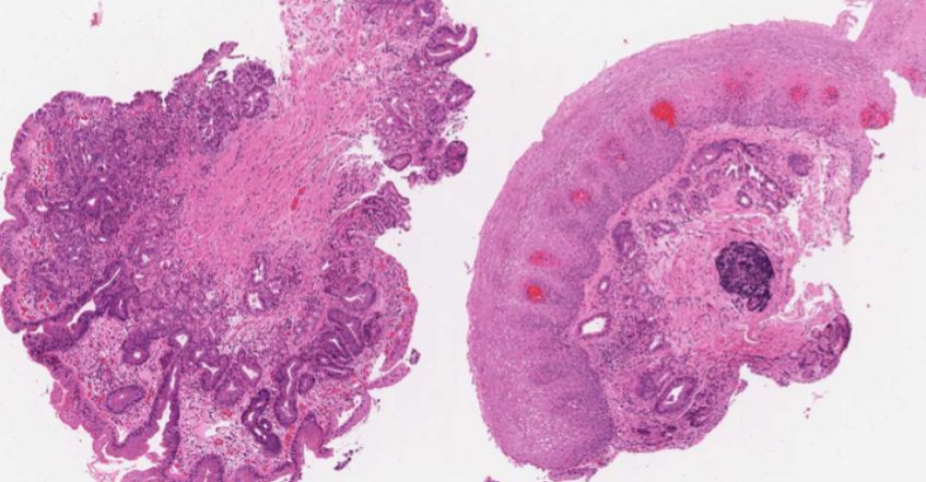 75yo obese male with long-standing GORD presents with progressive dysphagia and weight loss