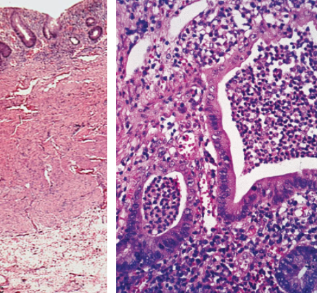 45yo male presents with two months of faecal frequency with loose stools, urgency and tenesmus. Associated with this is abdominal pain prior to defaecating and rectal bleeding