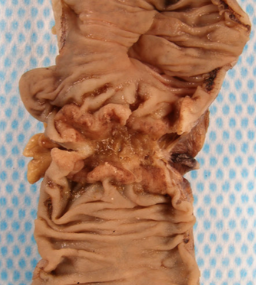 33yo patient presents with diarrhoea associated with crampy abdominal pain localised to the RLQ. Associated with this is a fever and mild arthralgia