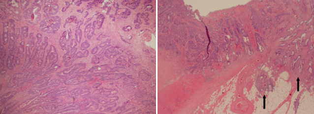65yo male presents with a 6 month history of rectal bleeding and change in bowel habit. Associated with this he has a many month history of unintentional weight loss and fatigue