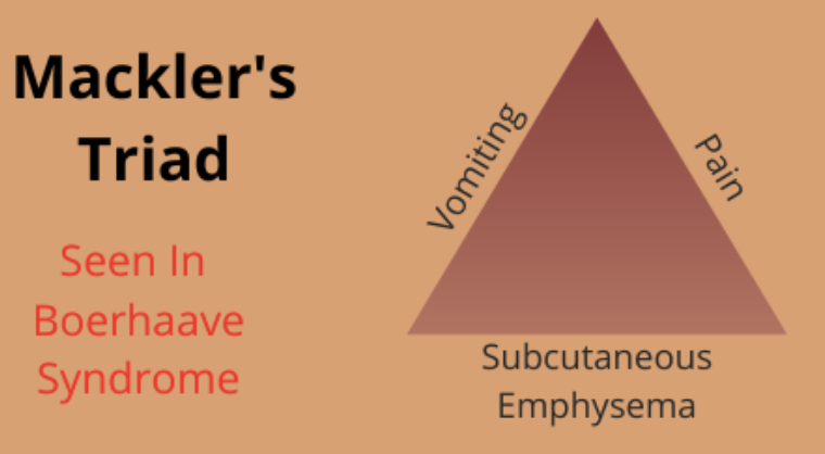 There are a number of symptoms that can present in a patient with oesophageal perforation. Macklers triad is often used to identify those who may have