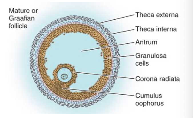 Describe the different types of granulosa cells (responsible for follicle development):