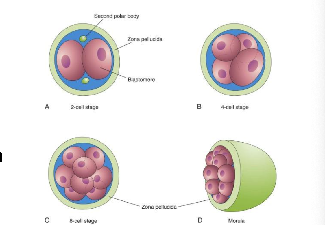 *cell growth is limited because of the zona pellucida, thus the cells start compacting and become smaller in size*