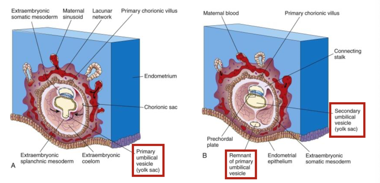 *primary umbilical vesicle is equivalent to the yolk sac present in other animals*