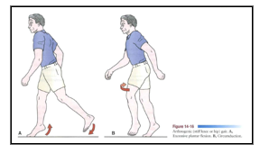 Presents as a swinging of the paraplegic leg outward and ahead in a circle or pushes it ahead. Also, the affected upper limb is carried across the trunk for balance
