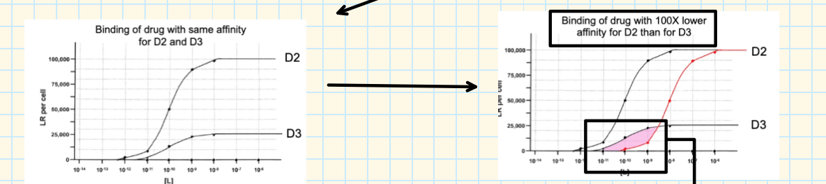 if you lower the affinity for D2 then there is a window where the drug can bind to d3 receptors.