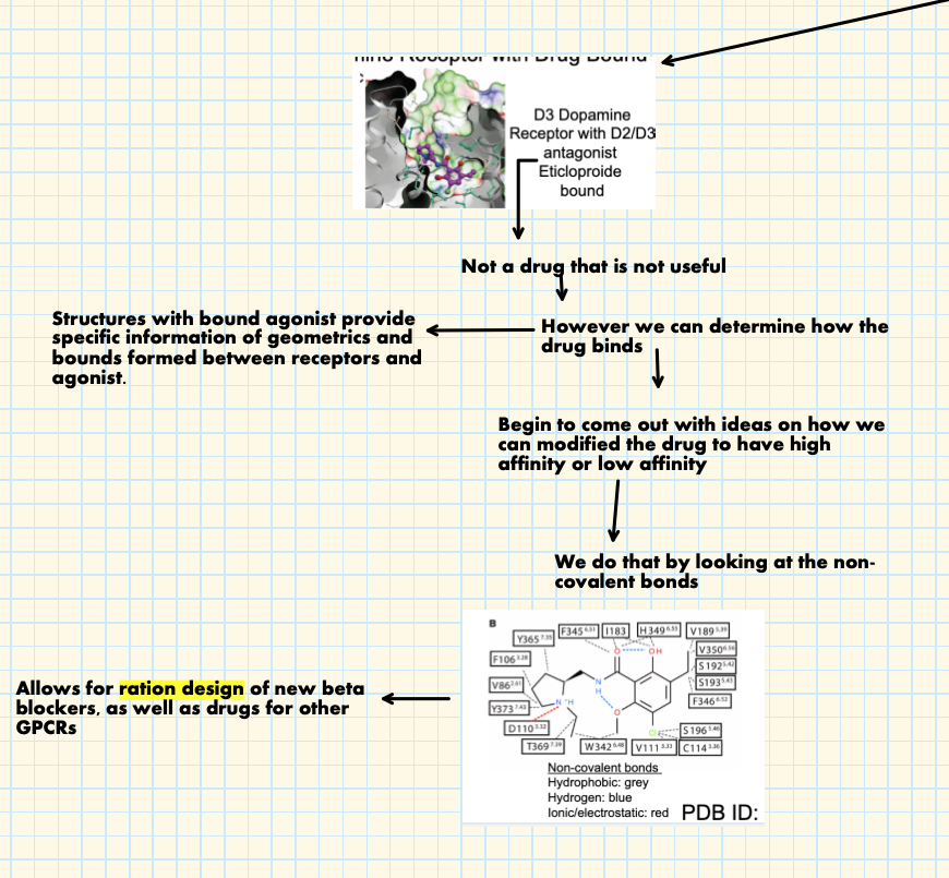 (recall: Structures with bound agonist provide specific information of geometrics and bounds formed between receptors and agonist, allows for ration design of new beta-blockers.