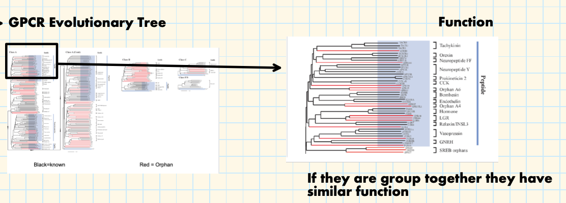 If orphan GPCRs are grouped together with known GPCRs then we can predict the orphan function is similar to itself sibling known GPCRs.