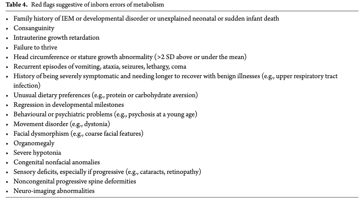 Name 6 first tier metabolic investigations for IDD/GDD/ASD if red flags (CCMG 2022-2023)