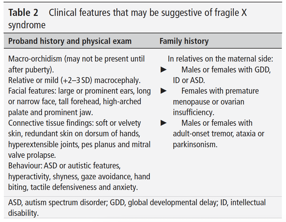 Clinical features of Fragile X