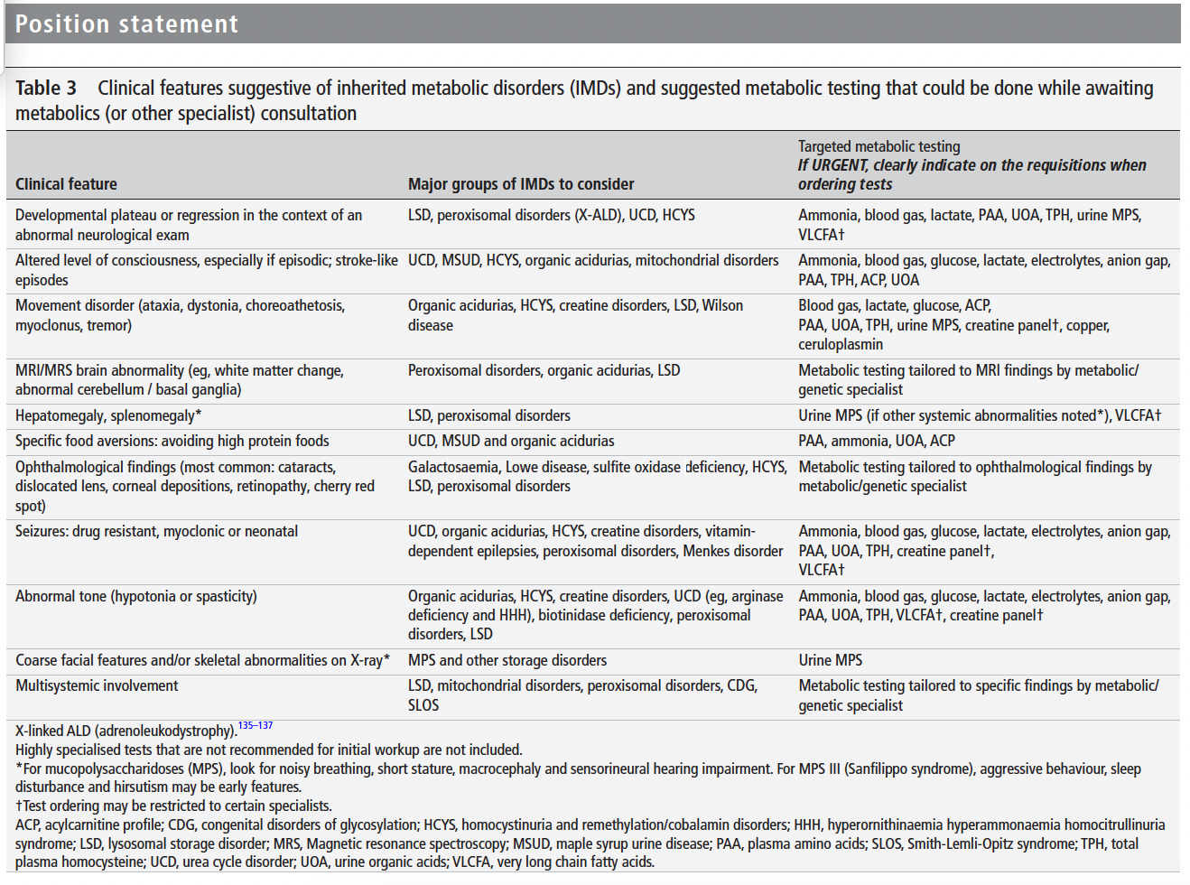 CCMG - based on clinical presentation