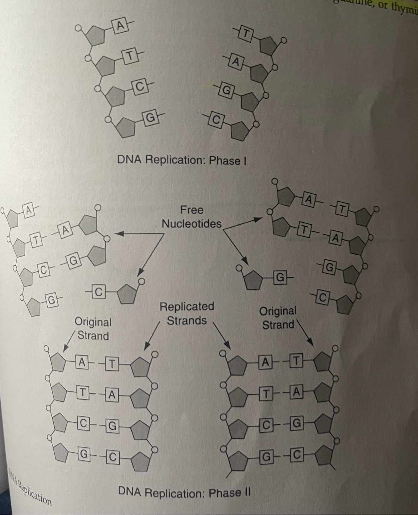 -free (or unattached) nucleotides are incorporated into the unzipped portion of the DNA, so that complementary base pairs join to form exact duplicates