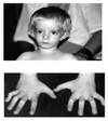 and feet, and mild facial
