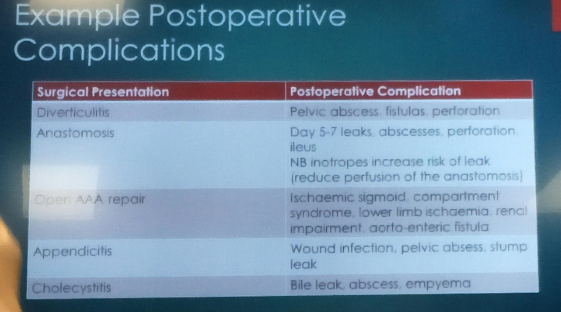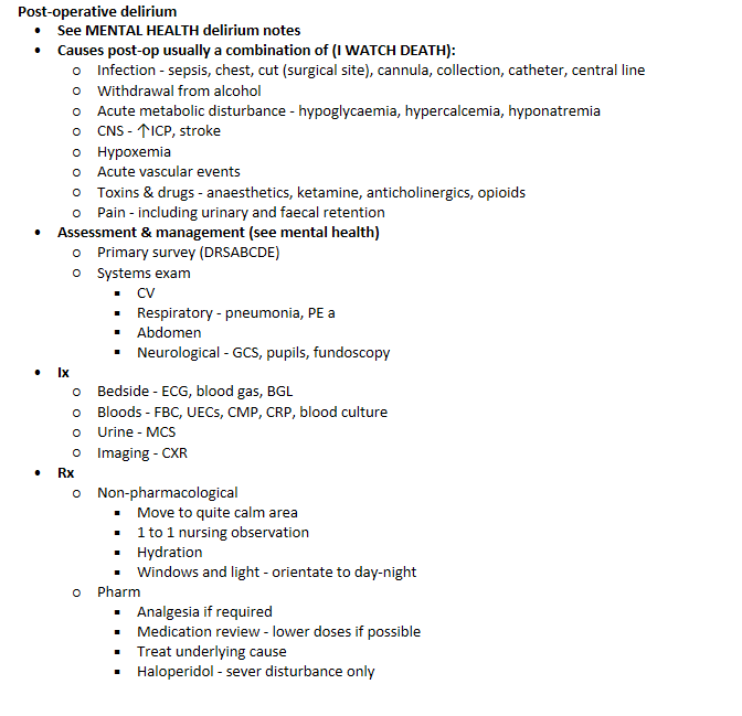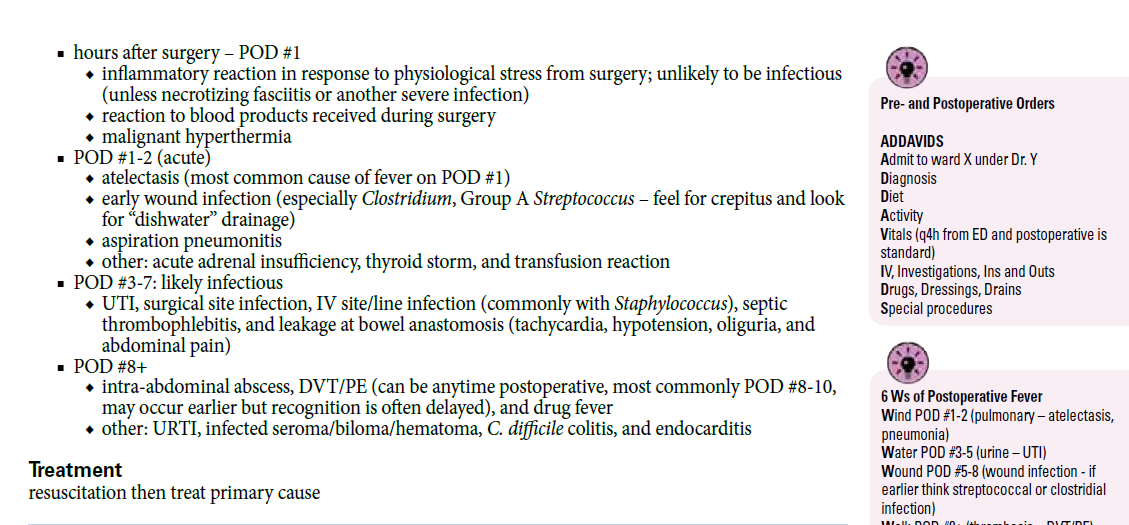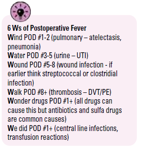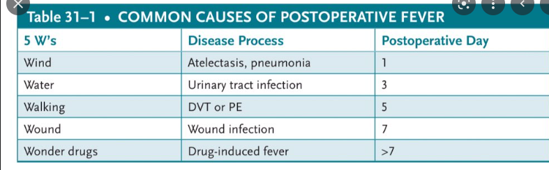 POD #1-2 days post op: (Wind) atelectasis- Most common cause day 1