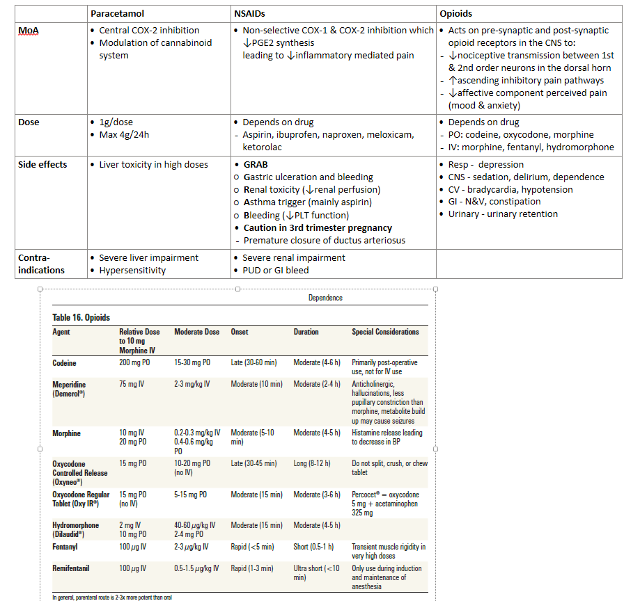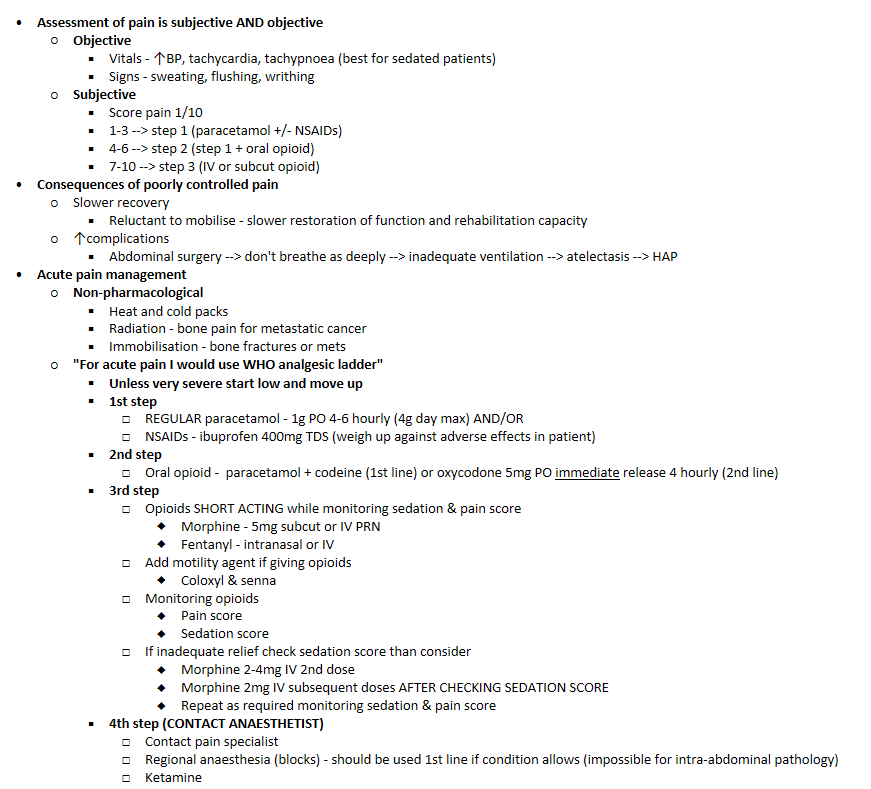 Medication review - anaesthetic, analgesia, anti-emetics, regular medications)