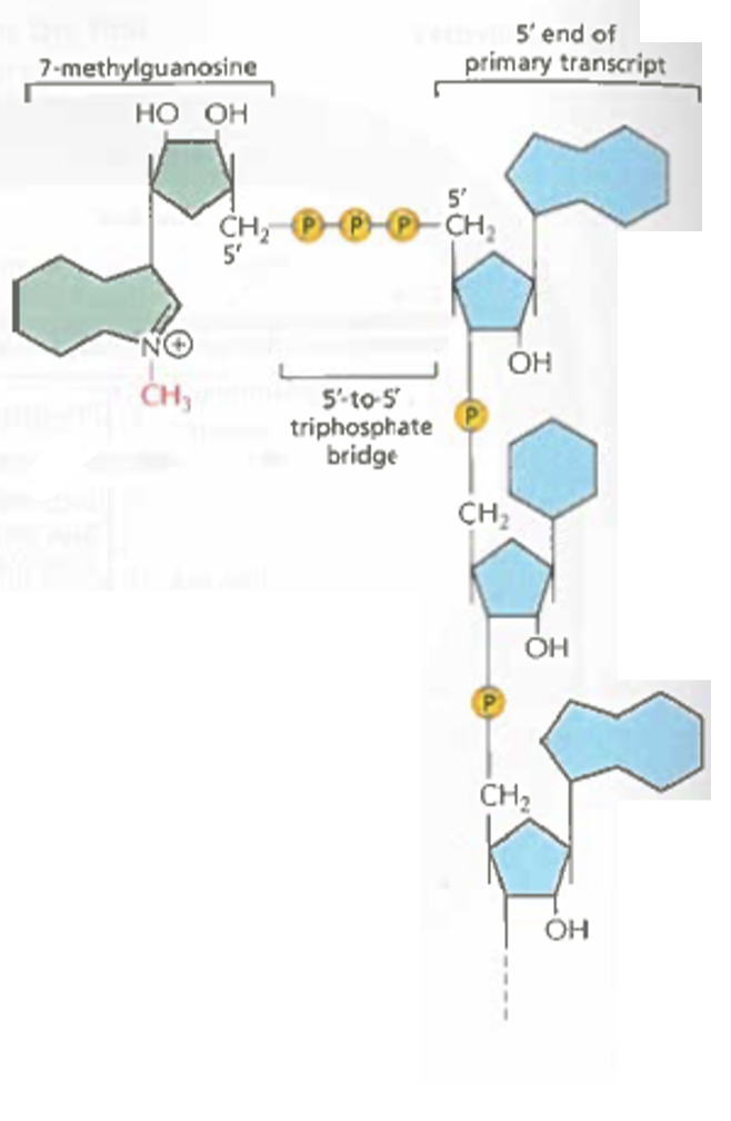 the 5’ end is modified to a 7-methylguanosine by 5’-5’ triphosphate bridge