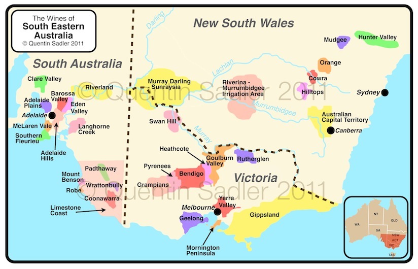 Australia appellations are subdivided into what three categories?